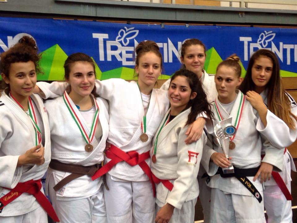 Le ragazze Busto Francesca e Maietta Roberta (63 kg) rinforzate da Amaron Emilie (57 kg) e da Petra Nareks nei 52 kg, atleta di indubbio spessore ed esperienza, iniziano fin da subito la loro gara con un incontro importante e difficile contro la polizia, scendono in tre senza possibilità di errore, i primi due pesi pareggiano il gap di vittorie, ma purtroppo Francesca non riesce a portare a casa l’incontro , la squadra va a giocarsi e conquistarsi la medaglia di bronzo contro il synergi judo lodi, anche qui scendono con un peso in meno, ma Petra, Amaron e Francesca non falliscono e portano a casa il bronzo, buona anche la prova di Roberta che pur regalando chili nei 70kg, lotta e c’e la mette tutta!
